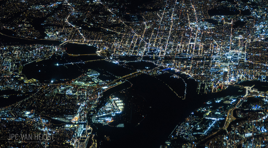 Looking down at Washington DC at night, during a crystal-clear evening from...